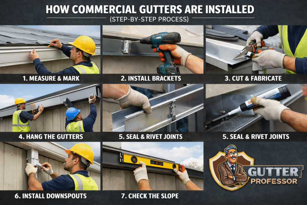 At Gutter Professor, we specialize in professional commercial gutter installation tailored to Florida’s Gulf Coast climate. In this guide, we explain how commercial gutter systems are designed, installed, and realized for businesses in Saint Petersburg, FL.