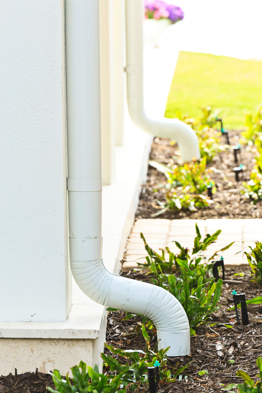 Downspouts are strategically placed to manage high water volume.